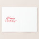 Personalizar, cumpleaños feliz, letras rojas interiores, fondo blanco - tarjeta de Relieve metalizado dorada o plateada