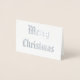 Tarjeta de Relieve metalizado plateado Patriótica de caligrafía navideña.