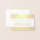 El diseño de esta tarjeta de Relieve metalizado dorado incluye un mensaje como "¡Feliz cumpleaños, Jennifer!" en la parte delantera, donde se puede cambiar el nombre ("Jennifer"). También es un patrón a rayas en el frente. El interior incluye un mensaje de cumpleaños personalizado.
