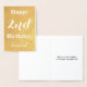 Este elegante y sencillo diseño de tarjetas de cumpleaños de Relieve metalizado dorado incluye un mensaje como "¡Feliz segundo cumpleaños, Jessica!" en la parte delantera. El nombre ("Jessica") se puede cambiar para personalizar la tarjeta. El interior muestra un mensaje de personalizable como "¡Que tu segundo cumpleaños sea feliz y alegre!". Podría ser dado a alguien que esté celebrando su segundo cumpleaños. [~Z0000007]