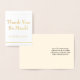 Este diseño personalizado de tarjetas de felicitación de agradecimiento a los Relieves metalizados dorados incluye el mensaje "¡Muchas gracias!" en el frente, junto con un mensaje personalizado en el interior. Se podría usar para mostrar aprecio a alguien que ha hecho algo bueno.