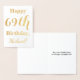 Este sencillo y elegante diseño de tarjetas de cumpleaños de Relieve metalizado dorado incluye un mensaje como "¡Feliz cumpleaños número 69, Michael!" en la parte delantera. El nombre ("Michael") se puede cambiar para personalizar la tarjeta. El interior incluye un mensaje de personalizable como "¡Que tu cumpleaños número 69 sea feliz y alegre!". Se podría dar a alguien que esté celebrando su sexagésimo noveno cumpleaños. [~Z0000005]