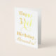 Este sencillo y elegante diseño de tarjetas de cumpleaños de Relieve metalizado dorado incluye un mensaje como "¡Feliz tercer cumpleaños, Alexandra!" en la parte delantera. El nombre ("Alexandra") se puede cambiar para personalizar la tarjeta. El interior muestra un mensaje de personalizable como "¡Que tu tercer cumpleaños sea feliz y alegre!". Podría ser dado a alguien que está celebrando su tercer cumpleaños. [~Z0000005]