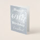 Este elegante y sencillo diseño de tarjetas de cumpleaños de Relieve metalizado plateado incluye un mensaje como "¡Feliz cumpleaños número 69, Caroline!" en el frente. El nombre ("Caroline") se puede cambiar para personalizar la tarjeta. El interior incluye un mensaje de personalizable como "¡Que tu cumpleaños número 69 sea especial y alegre!". Se podría dar a alguien que esté celebrando su sexagésimo noveno cumpleaños. [~Z0000010]