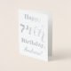 Este sencillo y elegante diseño de tarjetas de cumpleaños de Relieve metalizado plateado incluye un mensaje como "¡Feliz cumpleaños número 74, Andrew!" en el frente. El nombre ("Andrew") se puede cambiar para personalizar la tarjeta. El interior incluye un mensaje de personalizable como "¡Que tu cumpleaños 74 sea feliz y alegre!". Se podría dar a alguien que está celebrando su cumpleaños setenta y cuatro. [~Z0000009]
