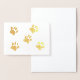 Una linda tarjeta de Relieve metalizado dorado con un patrón de huellas de pata de perro en la parte delantera de la tarjeta.