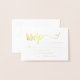 Al igual que mis invitaciones reales de Relieve metalizado de oro, esta tarjeta RSVP de Relieve metalizado de oro a juego se puede personalizar fácilmente. Tipografía de escritura simple y elegante. Incluya la respuesta, el número de invitados que asisten a los campos y el atuendo de su boda o cualquier otro evento, dentro para recordárselo a los invitados.