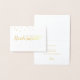 "¿Serás Mi niñera?" Minimalista tarjeta de Relieve metalizado dorado elegante de Confetti con la frase "¿Serás mi dama de honor?" en el Relieve metalizado oro real estilo de letra de escritura moderna y real confeti de Relieve metalizado de oro en el frente con texto falso de Relieve metalizado de oro personalizado dentro de la tarjeta.