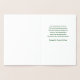 El trébol dorado de tres hojas en el frente y la bendición irlandesa en el interior (que se puede mantener o reemplazar con su propio mensaje). El texto interior dice "Que el camino se levante para conocerte. Que el viento esté siempre a tu espalda. Que el sol brille cálidamente sobre tu cara, la lluvia caerá suave sobre tus campos. Y hasta que algún día nos volvamos a ver, Dios te mantenga en el hueco de su mano. ¡Feliz Día de San Patricio!"