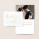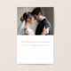 Una hermosa y elegante tarjeta de agradecimiento con verdadero Relieve metalizado en la parte delantera. Dentro puedes añadir tu foto de boda. El sentimiento en el interior es de personalizable y hay espacio para añadir un toque propio.