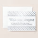 Este personalizado, Relieve metalizado personalizado, presenta el mensaje "Con nuestras más profundas condolencias..." en el frente, junto con un mensaje personalizado en el interior. Tal vez se podría usar para ofrecer solidaridad a alguien que ha sufrido una mala suerte.