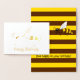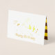 El frente tiene una abeja de miel personalizado y un "cumpleaños feliz" en Relieve metalizado. El interior tiene un fondo marrón y amarillo a rayas, la abeja de miel en color y el mensaje insignificante "¡Que feliz en tu cumpleaños!"
