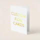 Personalizado imprimió RELIEVE METALIZADO DORADO personalizado en la plantilla estándar de 5" x 7" (RETRATO) BLANCO MATTE GREETING CARD Blank. Diseñar, crear, hacer el tuyo propio. Sus imágenes y texto en el exterior (frontal y posterior) de la tarjeta impresa mediante el proceso de impresión de tinta metálica de Relieve metalizado, el patrón de semitonos y sus diseños en el interior impresos en la impresión CMYK de color claro y completo. Sobre blanco estándar incluido. 3 Opciones de papel para tarjetas y sobres: blanco mate estándar, gris premium, kraft premium. 3 Opciones de tamaño de tarjeta. Opciones de tinta de Relieve metalizado metálico: ORO o PLATA. PAPEL BLANCO ESTÁNDAR MATTE: espesor de 17,5 pt / peso de 120 lb / 324 GSM. Acabado mate blanco claro, sin revestir, con una textura de concha de huevo, fácil de escribir y sin manchas. Impreso y hecho en EEUU. Tarjetas Best for Navidad, Tarjetas "Will You Be My Bridesmaid", Programas de Bodas, Tarjetas de agradecimiento, Tarjetas de cumpleaños, Tarjetas de aniversario, tarjetas de notas estacionarias plegadas...