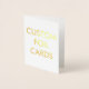 Personalizado imprimió RELIEVE METALIZADO DORADO personalizado en una plantilla de 4,25" x 5,5" (RETRATO) TARJETA GRIS PREMIUM en blanco. Diseñar, crear, hacer el tuyo propio. Sus imágenes y texto en el exterior (frontal y posterior) de la tarjeta impresa mediante el proceso de impresión de tinta metálica de Relieve metalizado, el patrón de semitonos y sus diseños en el interior impresos en la impresión CMYK de color claro y completo. Sobre blanco estándar incluido o actualizar a sobres de papel coloreado coincidentes. 3 Opciones de papel de tarjeta: blanco mate estándar, gris premium, kraft premium. 3 Opciones de tamaño de tarjeta. Opciones de tinta de Relieve metalizado metálico: ORO o PLATA. PAPEL GRIS PREMIUM: espesor de 16 pt/ peso de 130 lb / 352 GSM, gris neutro, acabado liso, impreso con una capa inferior blanca para ayudar a que el color aparezca vívidamente. 30% de fibra post consumo (parte reciclada), FSC certificada y hecha con 100% de electricidad verde. Impreso y hecho en EEUU. Tarjetas Best for Navidad, Tarjetas "Will You Be My Bridesmaid", Programas de Bodas, Tarjetas de agradecimiento, Tarjetas de cumpleaños, Tarjetas de aniversario, tarjetas de notas estacionarias plegadas...