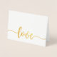 La tarjeta de felicitación Etched Relieve metalizado dorado LOVE es perfecta para cualquier ocasión especial: bodas, aniversario de bodas, el día de San Valentín y más. La palabra "AMOR" es el Relieve metalizado real impreso/grabado en el papel y es suave hasta el tacto. Personalizar el texto interior con el mensaje deseado o quita para que esté en blanco y para poder escribir a mano tu propio mensaje.