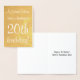 El diseño de esta tarjeta de felicitación de cumpleaños de Relieve metalizado dorado de personalizable incluye un mensaje como "ANameHere, have a fantástico cumpleaños 20!" en la parte delantera, donde se puede personalizar el nombre y el número de cumpleaños. El interior incluye un mensaje de cumpleaños personalizado. Una tarjeta de cumpleaños como esta podría ser dada a alguien que celebra un cumpleaños.