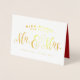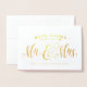 Envíe los deseos calientes de nuevos Sr. y señora con esta tarjeta brillante del oro que ofrece caligrafía moderna en el frente y una foto grande y un mensaje personalizado dentro.