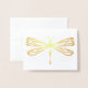 Una elegante libélula dibujada a mano representada en un Relieve metalizado brillante adorna una carta muy especial para que usted escriba su mensaje de corazón.