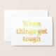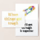 Después el frente dice "Cuando las cosas se ponen difíciles" en Relieve metalizado. En el interior se puede leer "Vamos a pasar por esto juntos" con una pintura de un arcoiris de seguridad.