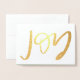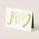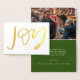 El Relieve metalizado de oro festivo "JOY" destaca esta tarjeta de saludo plegada de vacaciones con foto opcional dentro.