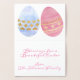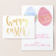Feliz Pascua en Relieve metalizado dorado en el frente. Pastel y huevos de oro con tu mensaje personalizado para las vacaciones de Pascua.