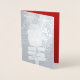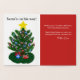 Tarjeta de felicitación para Navidades bonitos con la parte delantera de la tarjeta con Relieve metalizado elegante de plata imagen decorativa de Santa Claus con el signo del Polo Norte. Dentro de la tarjeta está la redacción, Santa está de camino escrito encima de una imagen a todo color de los antiguos adornos de árbol de Navidad coloridos y latas de caramelos, y estrella amarilla encima del árbol. Los presentes están debajo del árbol en una falda verde de árbol con bayas huecas. Un mensaje especial se escribe en el lado derecho de la tarjeta con texto blanco sobre un fondo rojo. Deje la redacción tal como está, o elimine e inserte su propio mensaje especial. Back of card tiene Feliz Navidad escrito en Relieve metalizado de plata. Fotografía original, ilustración, tarjeta versus derechos reservados © TamiraZDesigns.