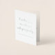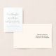 Este diseño personalizado y elegante de tarjetas de felicitación de Relieve metalizado plateado presenta el mensaje "Nuestros pensamientos están con usted y su familia..." en el frente, junto con un mensaje personalizado en el interior. Tal vez podría usarse para ofrecer solidaridad a los parientes de alguien que ha fallecido recientemente.