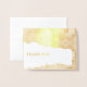 Tarjeta de agradecimiento de Relieve metalizado Esta tarjeta se muestra en papel de la tarjeta de acabado mate blanco con Gracias en Relieve metalizado de oro real en el frente junto con un audaz patrón floral en sutiles láminas de oro. El interior se muestra con un fondo de melocotón claro, dentro de un saludo preescrito que usted puede mantener como está o personalizar a su gusto mostrado en el persimón. Personalizar o comprar como se muestra, TAMAÑO: PEQUEÑO