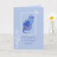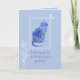 Una tarjeta de felicitación con un mensaje de condolencias por la pérdida de un gato mascota con un gato floral pintado con flores de acuarela azules sobre un fondo azul suave. Puede editar el mensaje para adaptarlo a sus necesidades.