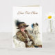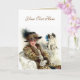Escena deliciosa del vintage con una señora de moda en un gorra elegante grande que sostiene su pequeño perro. Texto del personalizar en frente e interior de la tarjeta.