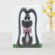 Esta adorable tarjeta de Pascua presenta a Jack, el simpático conejo gris vestido con su corbata de lazo rosa favorita. Personaliza esta linda tarjeta de Pascua agregando o eliminando tu texto para dejarla en blanco. Está basada en una pieza de arte original de © One Artsy Momma.