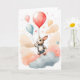 Tarjeta Conejito adorable de acuarela Globo rojo grande en