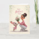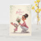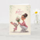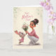 Tarjeta Conejito de rosa dando flores del Día de la Madre