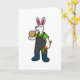 Tarjeta Conejo como granjero con zanahoria y sombrero