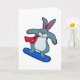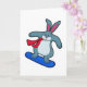 Tarjeta Conejo como snowboarder con snowboard y bufanda