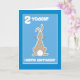 Una tarjeta de cumpleaños divertida para un niño de dos años, con un lindo conejo en un fondo azul y "2 hoy - Feliz cumpleaños" con letras blancas. Por favor, siéntase libre de personalizar el mensaje interno.