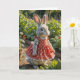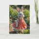 Tarjeta Conejo de cumpleaños con vestido en un jardín de t