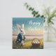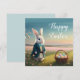 Tarjeta Conejo de Pascua con chaqueta azul