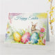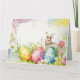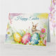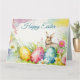 Tarjeta Conejo de Pascua con tres huevos de Pascua