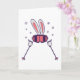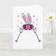 Tarjeta Conejo esquiando con bastones de esquí y gafas de