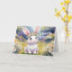 Un dulce conejito con corona de margaritas disfrutaba de un hermoso día en el césped.