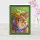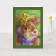 Tarjeta Conejo marrón de orejas caídas con sombrero de agu