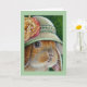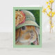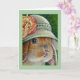 Tarjeta Conejo marrón en bonete de primavera Arte de acuar