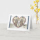 Scherenschnitte en alemán, decoupage en francés, recorte de papel para mí. En esta tarjeta, dos conejos dentro de un corazón de papel recortado sostienen un corazón de papel recortado que ellos mismos hicieron. Dice 'Te (corazón) amo'