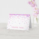 Tonos de confeti rosa y púrpura caen sobre esta tarjeta de agradecimiento linda y femenina. Perfecta para cualquier ocasión.