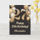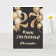Tarjeta de Confetti de Globos de Oro y Negro de Cumpleaños 27. Para una mayor personalización, haga clic en el botón "Personalizar" y utilice nuestra herramienta de diseño para modificar esta plantilla.
