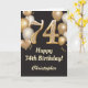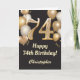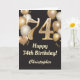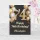 Tarjeta Confetti de globos de oro y negro en el 74° cumple