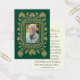 Un reverente y digno diseño conmemorativo católico con rocas de champán bordadas doradas tejidas en un elegante borde de nudos celta alrededor de una foto de su amado difunto. La parte de atrás, con un fondo verde profundo que recuerda al patrimonio irlandés, incluye una oración católica tradicional que invoca la intercesión de la Santísima Virgen María y los Santos. Ideal para misas funerarias o servicios conmemorativos, esta tarjeta sirve como un recuerdo sagrado para honrar una vida de fe.