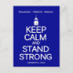 Un giro a los populares posters de "Mantengan la calma y sigan adelante", inspirado en la campaña de moral británica durante la Segunda Guerra Mundial. Esta tarjeta postal contiene una silueta de la parte superior del icónico reloj de la ciudad de Georgetown y las palabras "recuerden, reconstruyen, restauran". Debajo de eso, "Mantengan la calma y permanezcan fuertes. Georgetown 2013".