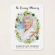 Sencillas tarjetas de oración funerales de simpatía floral de margarita. Esta moderna y elegante tarjeta de plegarias conmemorativas incluye flores de margarita en un diseño blanco. Front "In Loving Memory" Personaliza esta tarjeta de oración funeraria con fotos, nombres y fechas de sus seres queridos y sentimientos. Volver ~ Poema 'Que siempre camines en sol', que puede ser personalizado, por favor, contacte si quiere un diseño con un poema específico distinto a. Esta tarjeta de oración conmemorativa será un tesoro agudo, para los servicios funerarios y la celebración de la vida. DERECHOS RESERVADOS © 2020 Judy Burrows, Black Dog Art - Todos los derechos reservados. Tarjeta conmemorativa de la oración de la foto de la margarita floral funeraria